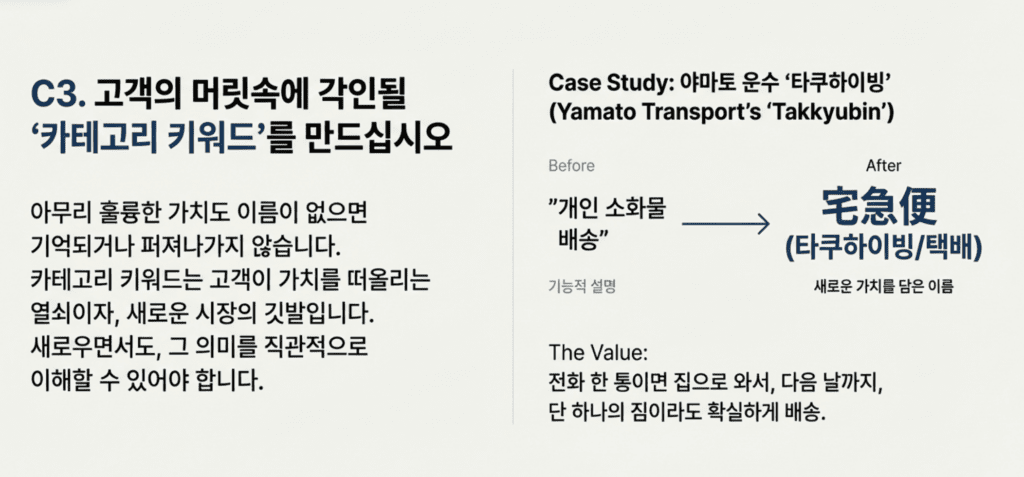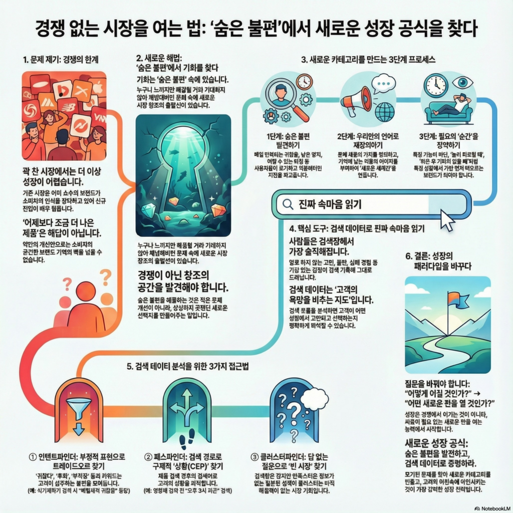포기된 문제를 찾아 새로운 카테고리를 만들고, 그 카테고리를 기억 속에 각인시키며, 검색 데이터로 고객의 진짜 문맥을 읽어야 합니다. 이것이 불확실성의 시대에서 브랜드가 살아남고 성장하는 가장 현실적이고 강력한 전략입니다.