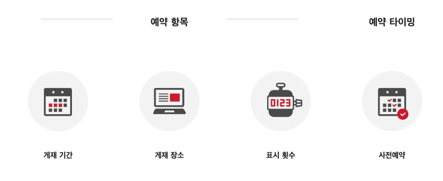 예약제의 경우 야후의 홈페이지, 뉴스 페이지 상단 등에 노출이 가능한 상품이며, 브랜드 인지도 향상에 적합한 광고입니다. 하지만 입찰형 광고 보다 최소 집행 예산이 높으며, 대행사를 통해서 진행이 가능한 상품입니다.