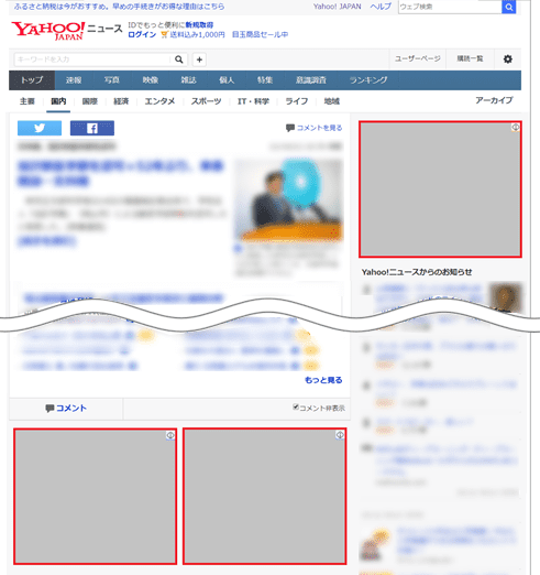 네이버 메인 DA(프리미엄 보장형), 타임보드와 같은 형식으로 운영되는 디스플레이 광고입니다.Yahoo! JAPAN의 메인 페이지, Yahoo! 뉴스 등의 서비스 페이지에 브랜드의 배너나 동영상의 광고를 게재합니다. 압도적인 노출량으로 높은 브랜딩 효과를 기대할 수 있습니다.